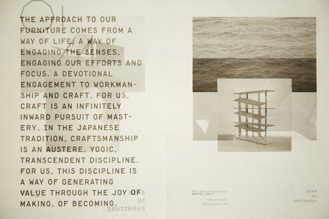 Collection 01 draws influence from Japanese joinery and woodworking techniques and from simple geometries and proportions. The resulting designs are intentionally without excess.